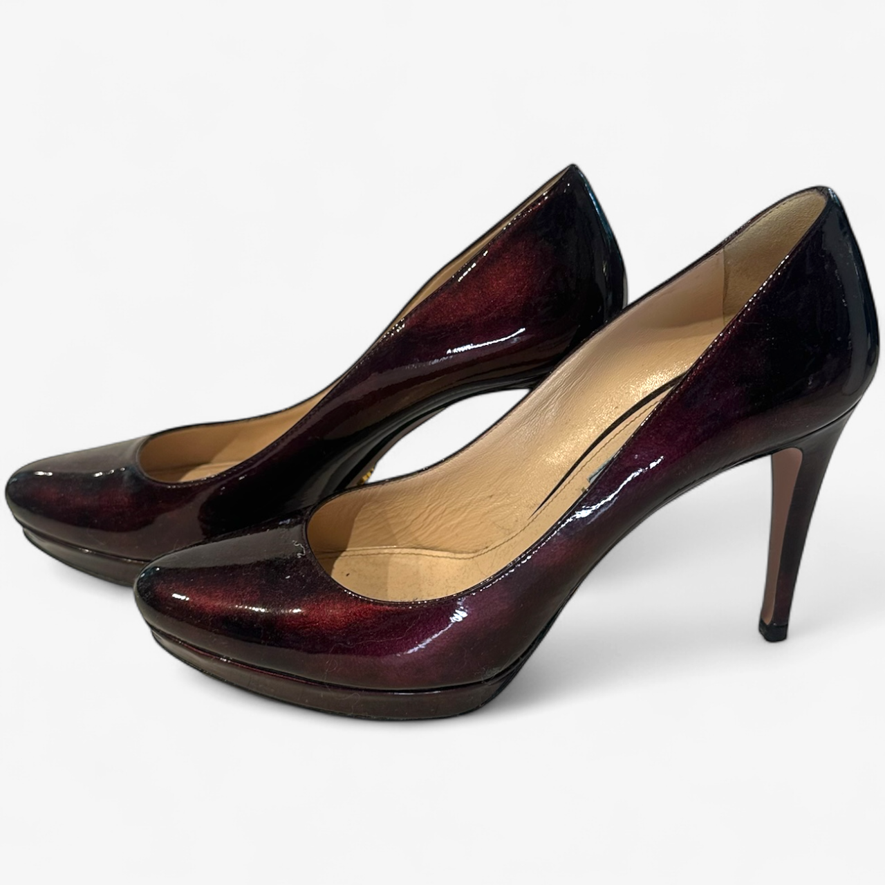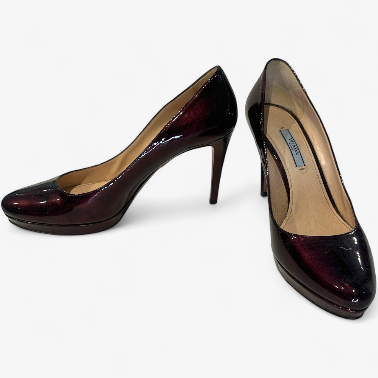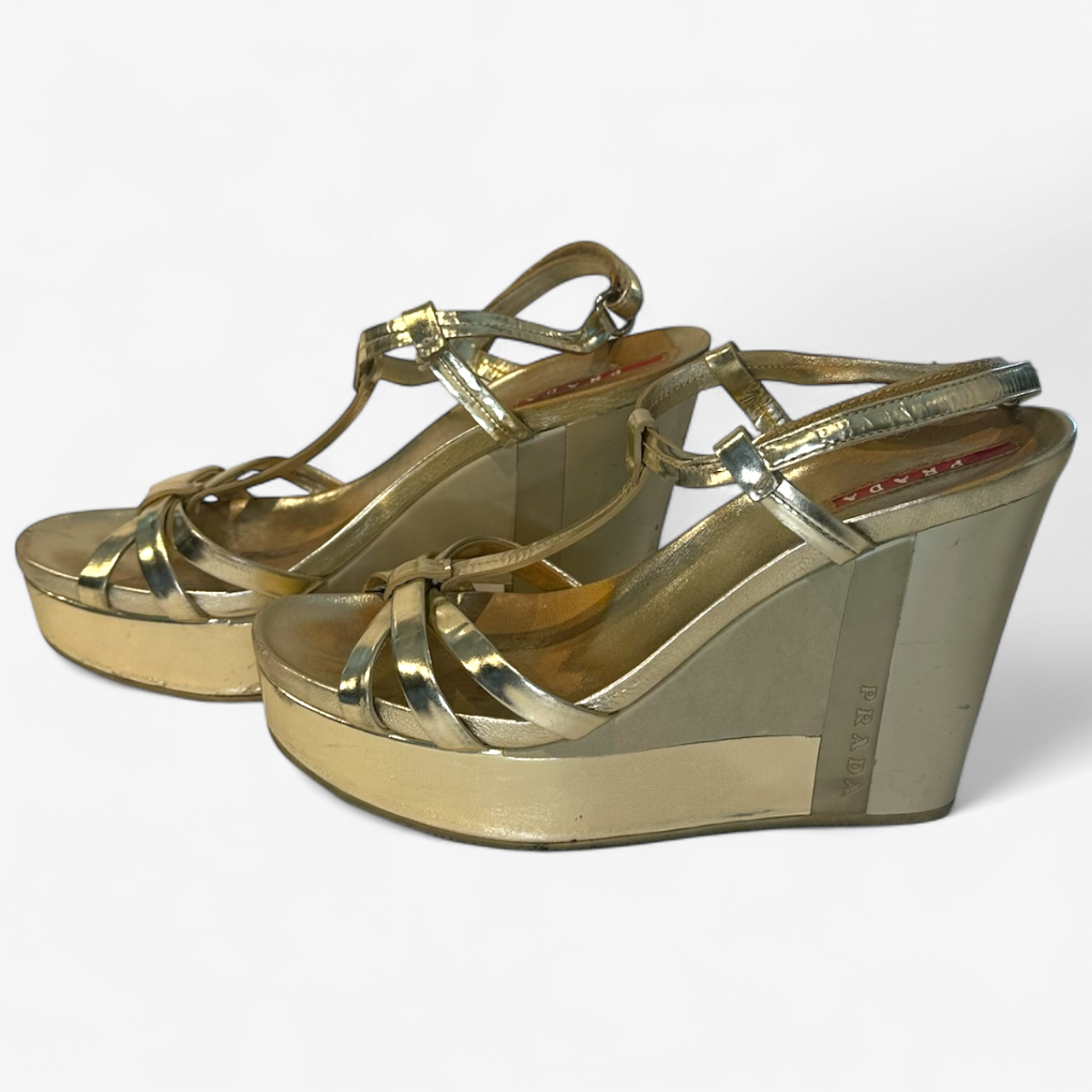 Prada Black Patent Leather Espadrille Wedge Sandals