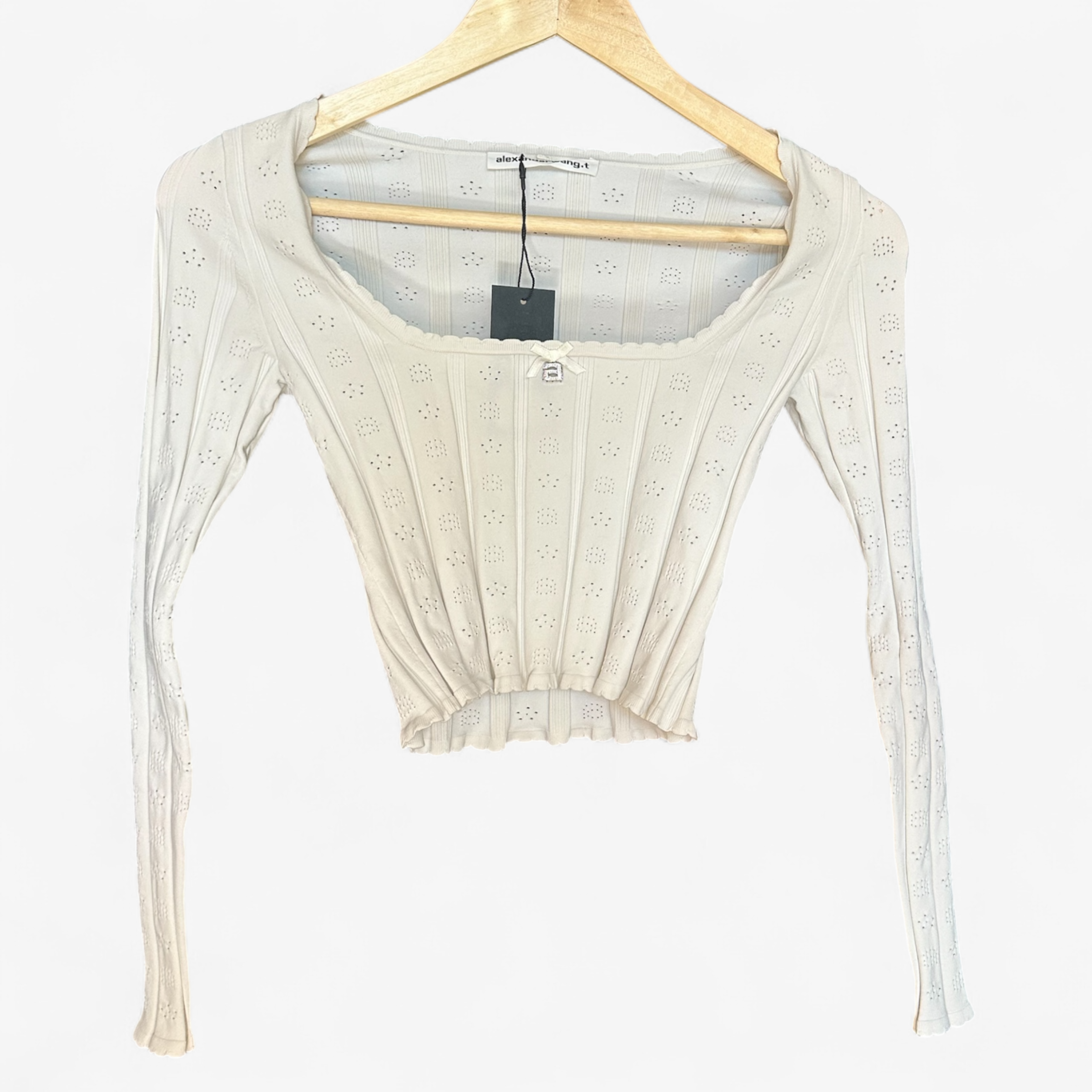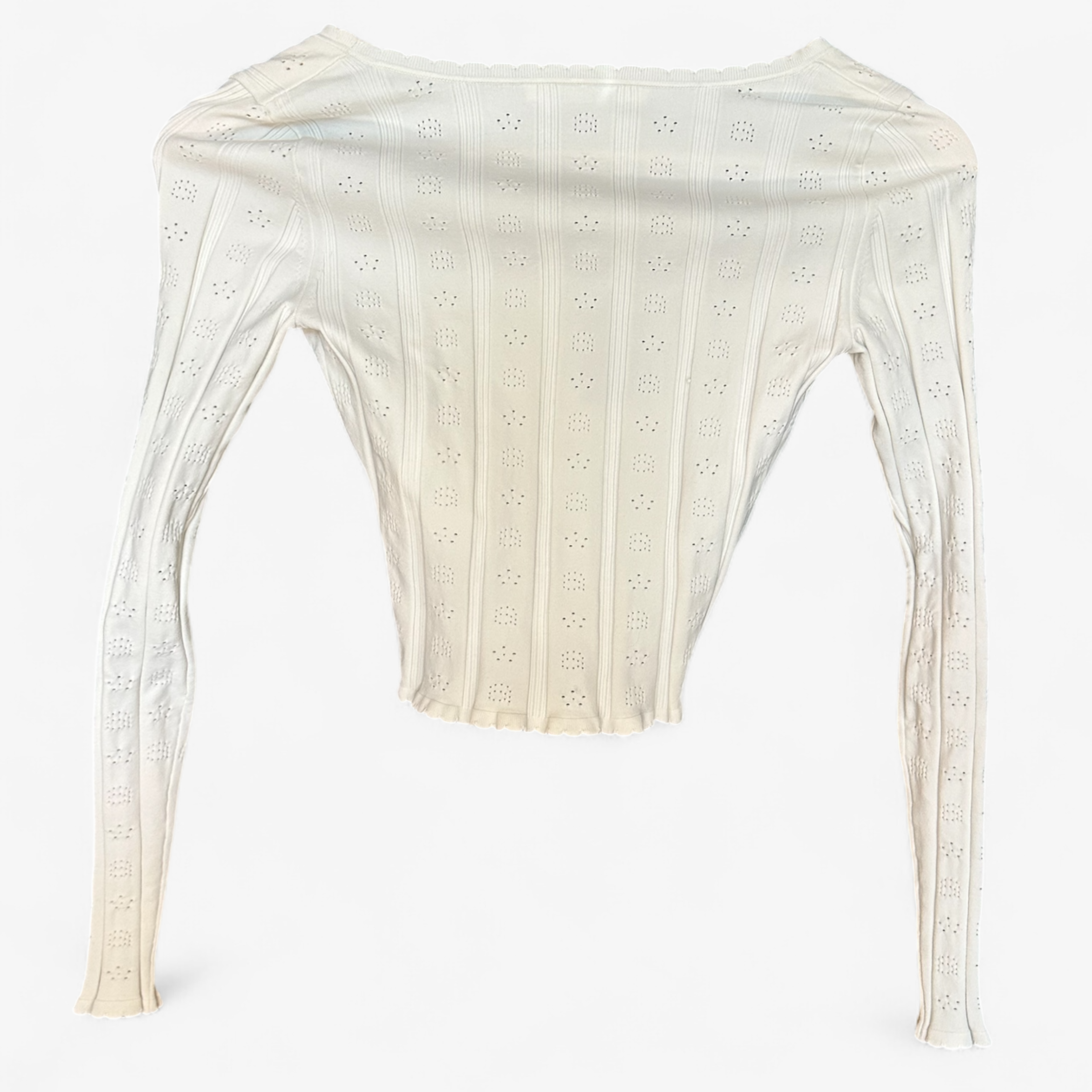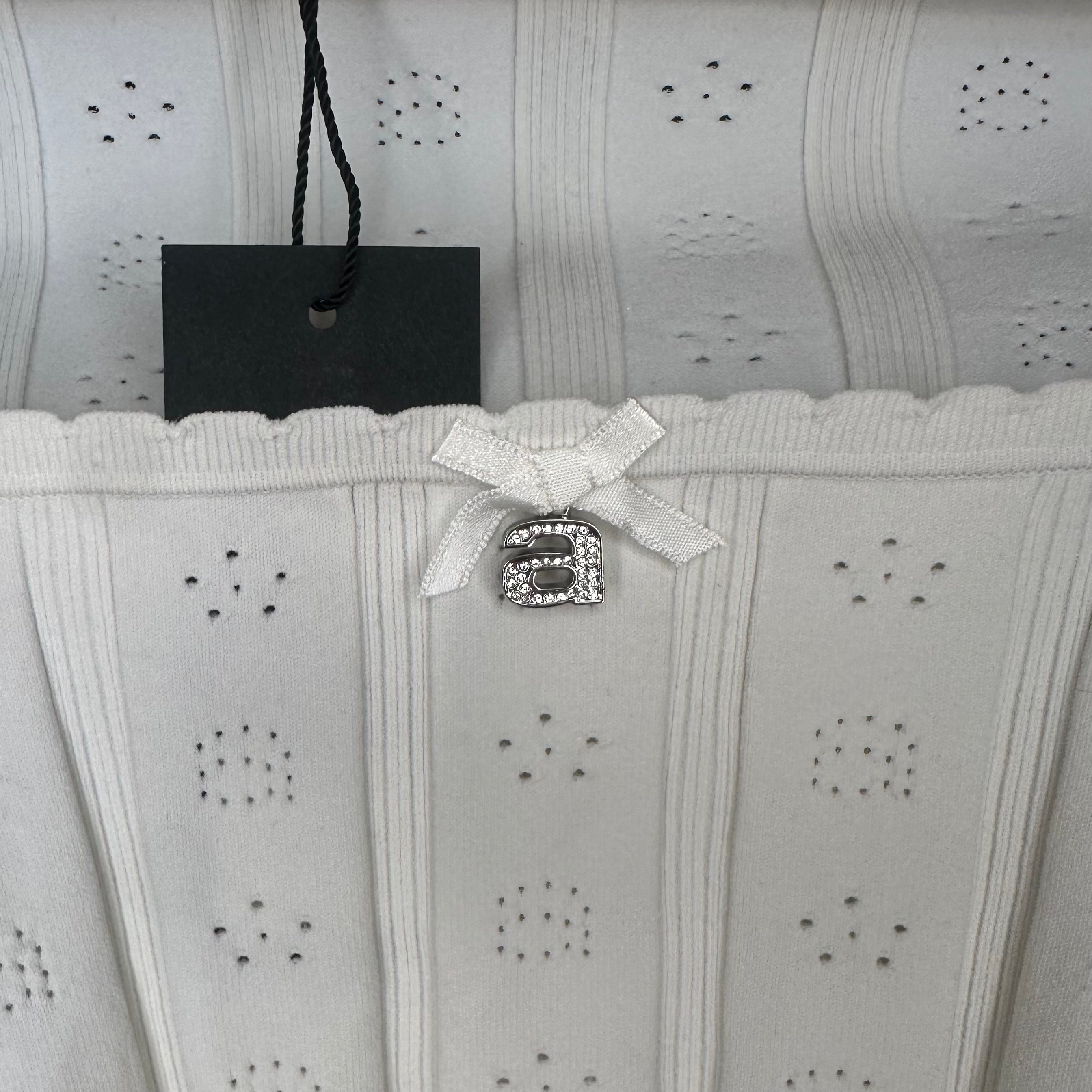 Description: In good condition, A charm with gems, pointelle design and cropped.
