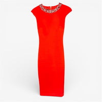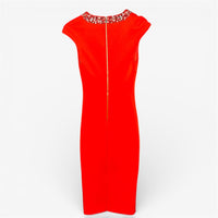 The Ted Baker Elenna Embellished Midi Dress is a striking occasion piece in a bright red hue, designed to stand out while remaining elegant. Featuring cap sleeves and a gem-embellished neckline, this dress is finished with refined detailing that adds a touch of glamour without overpowering the silhouette.