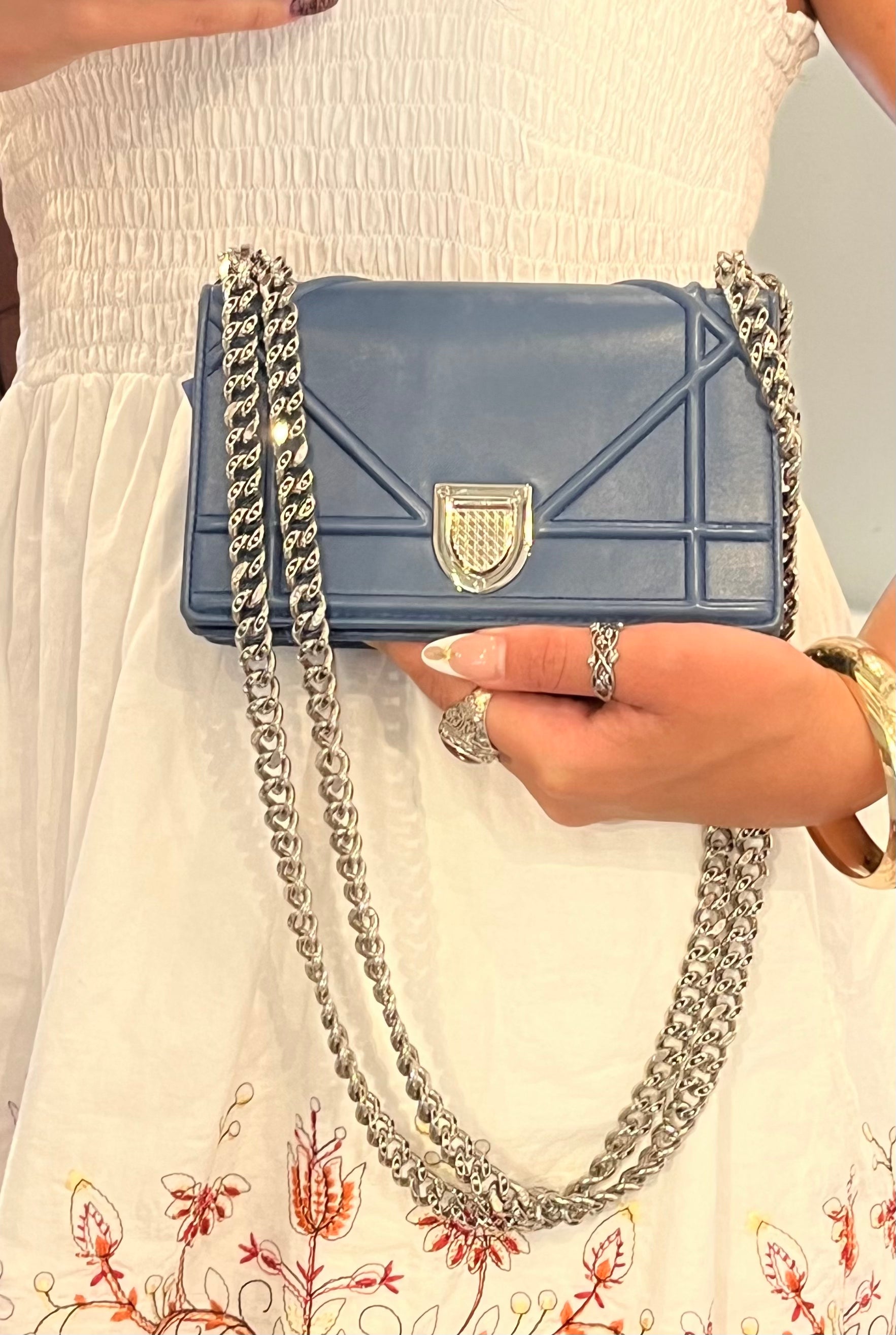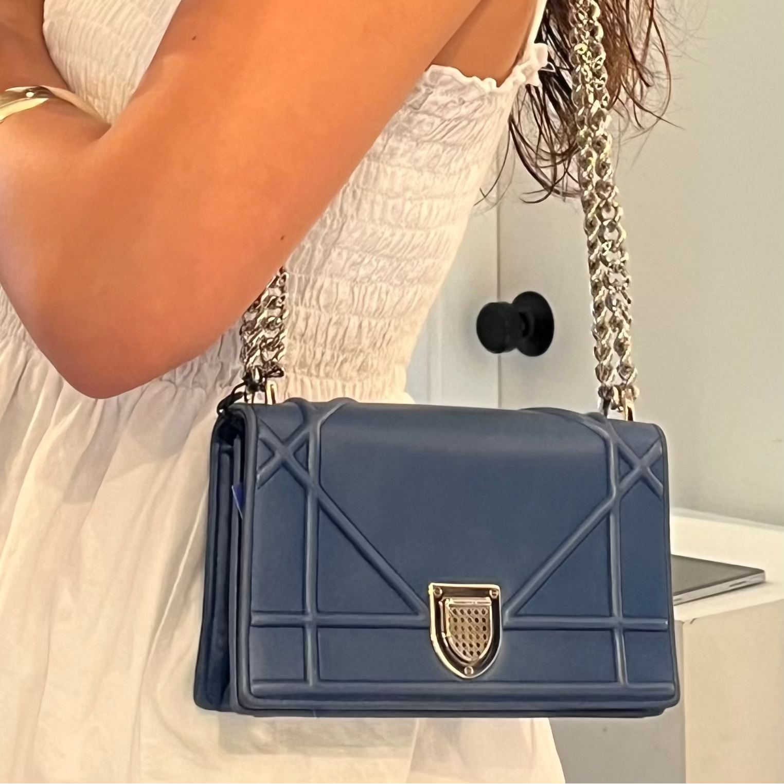 Description : Good condition, minor wear, silver hardware, flap closure.