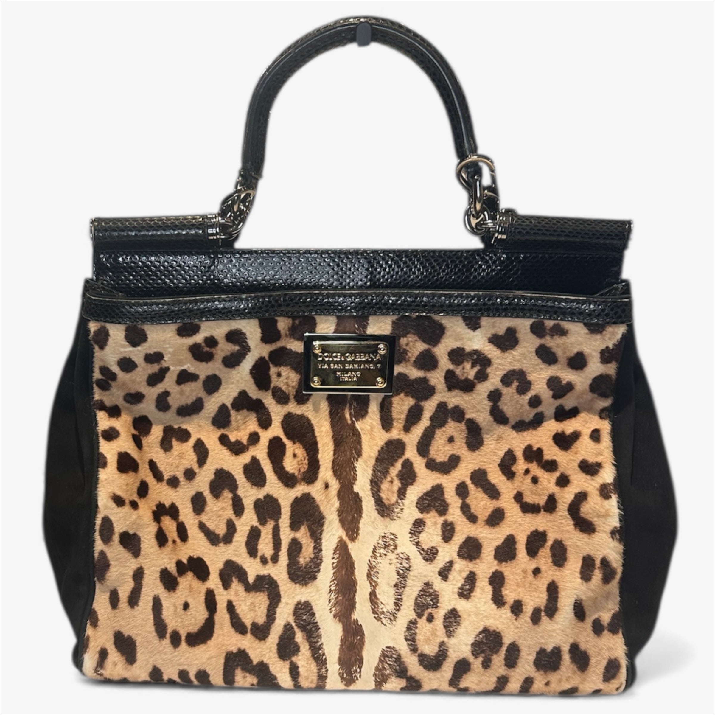 Dolce & Gabbana Leopard Print and Suede Shoulder Bag