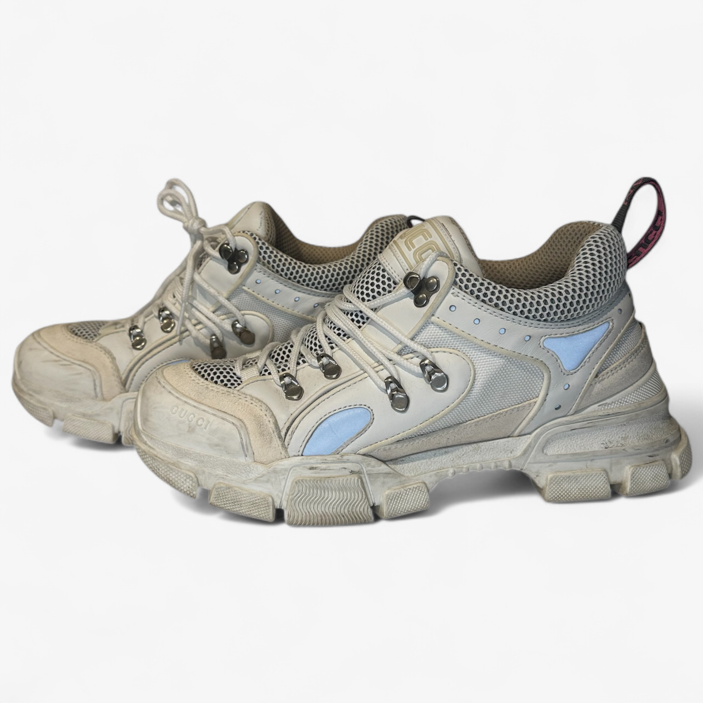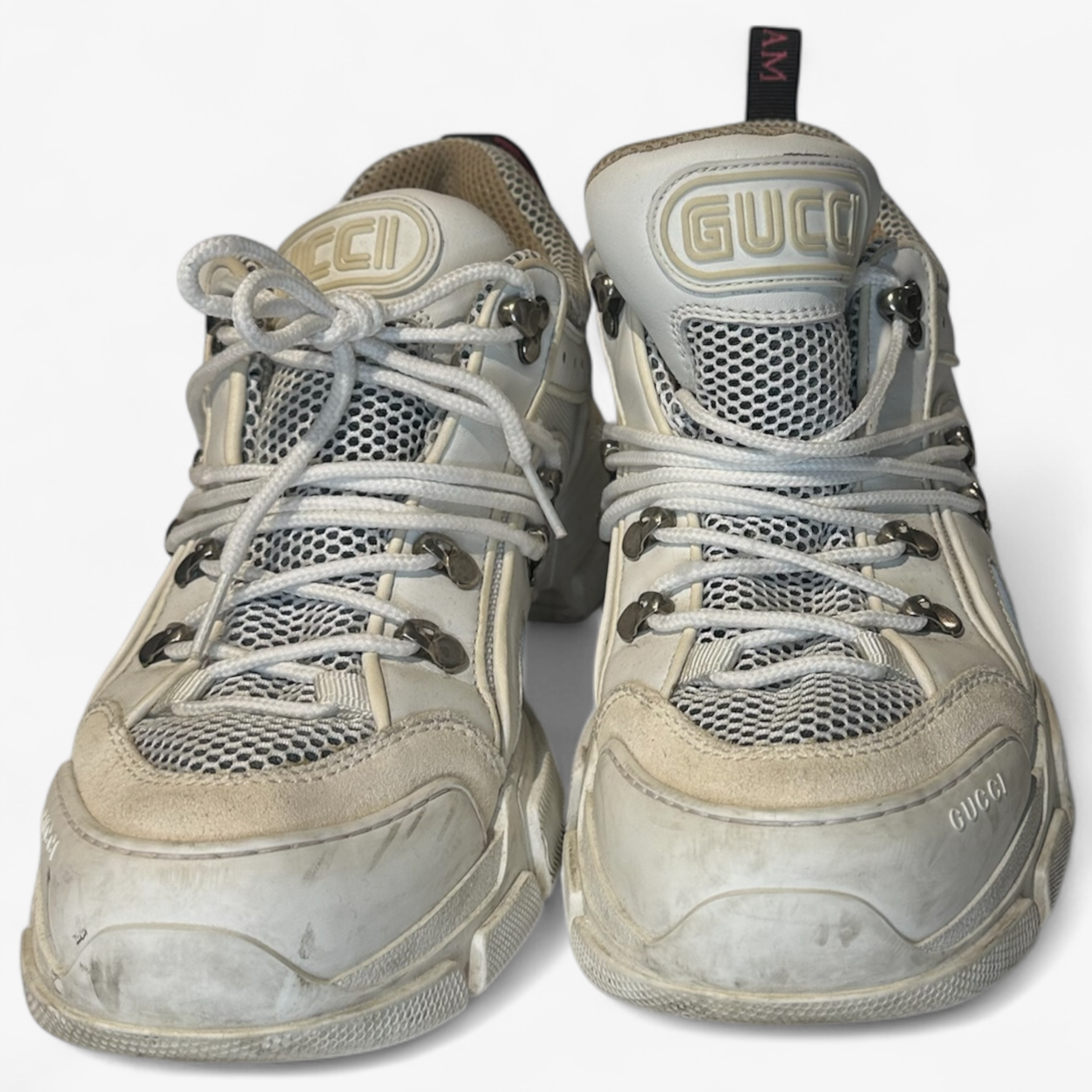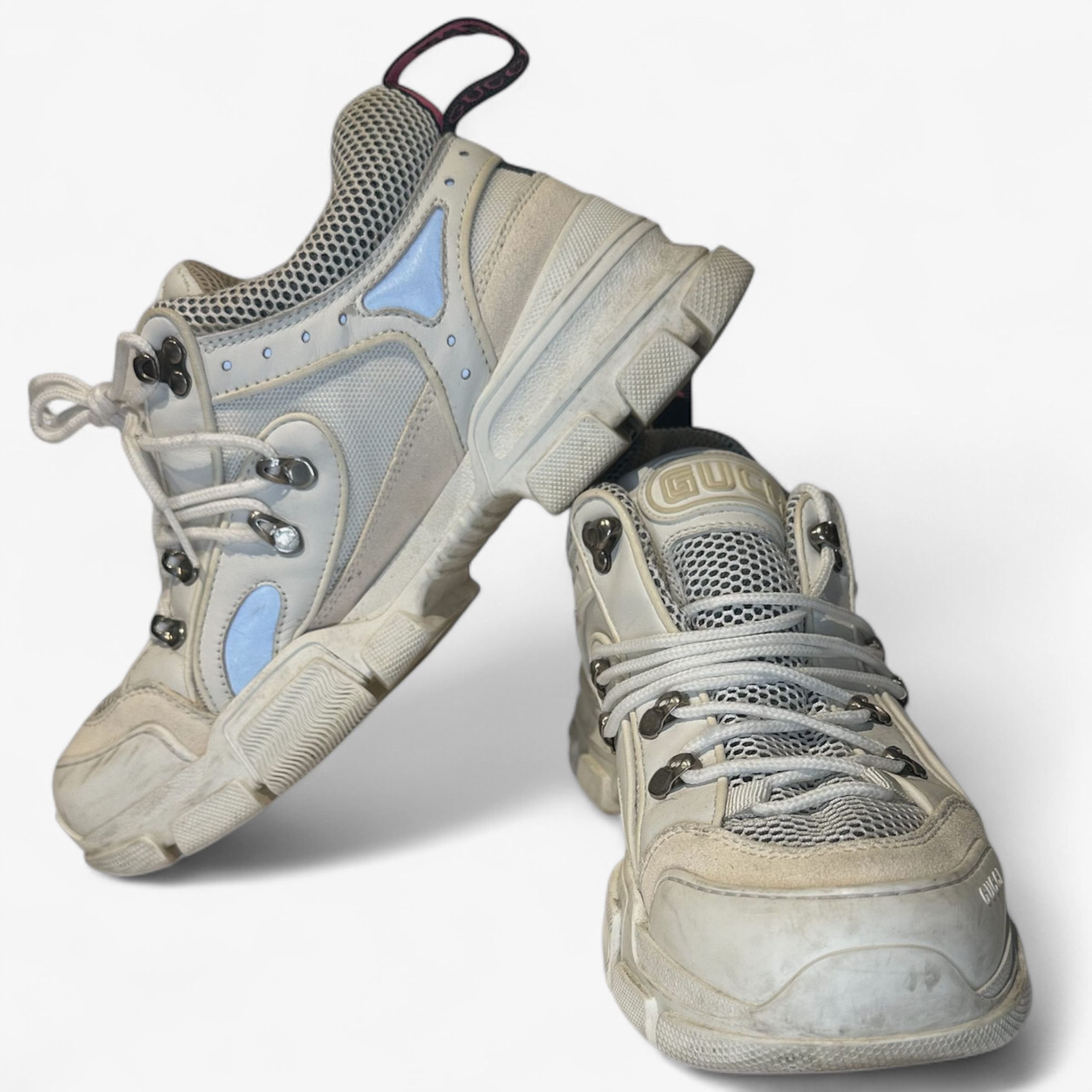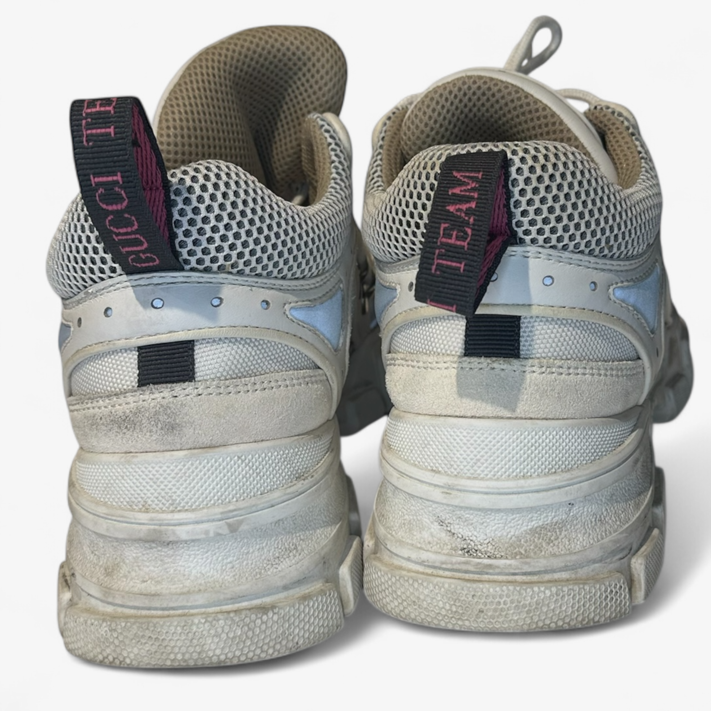 Description: Reg. $ 1,200, in fair condition, featuring silver hardware and chunky sneakers with reflective hi-vis detailing.