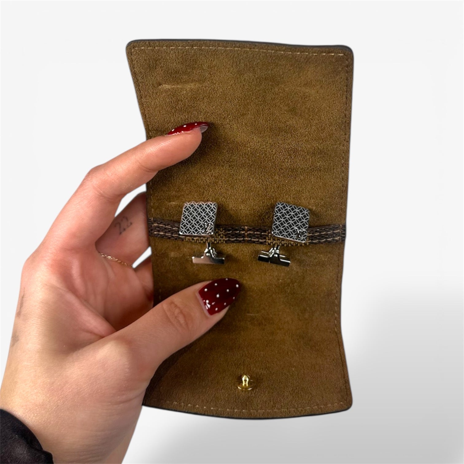 Louis Vuitton Silver Square Cufflinks Damier Case