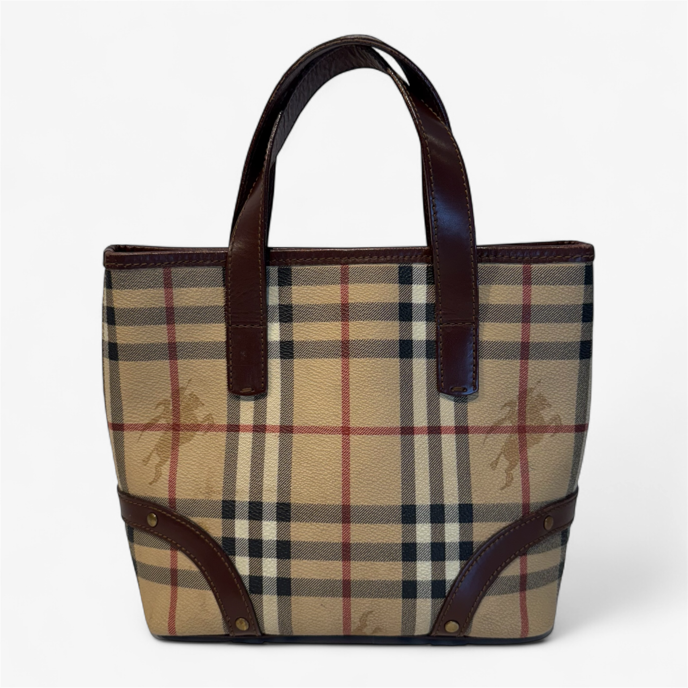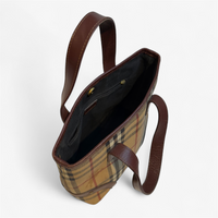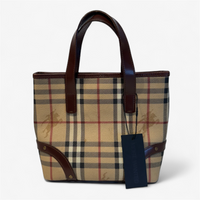 Description: Good condition, interior bag zipper is finicky, classic Burberry pattern, button closure.