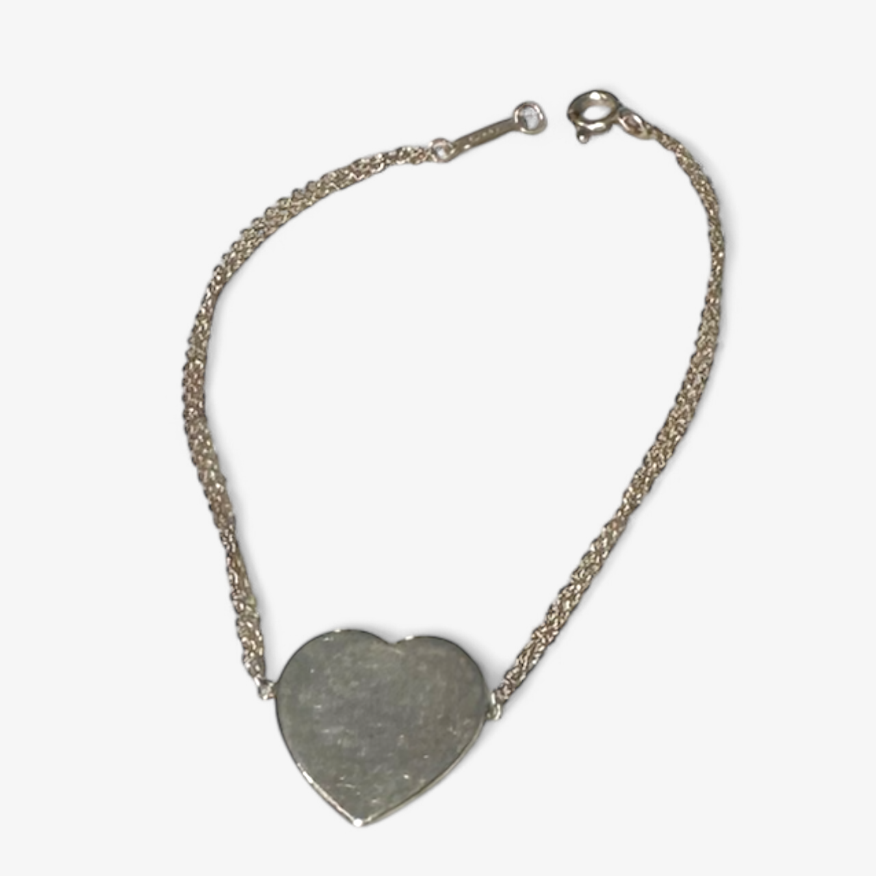 Description: Silver, classic heart, in good condition, slight wear.