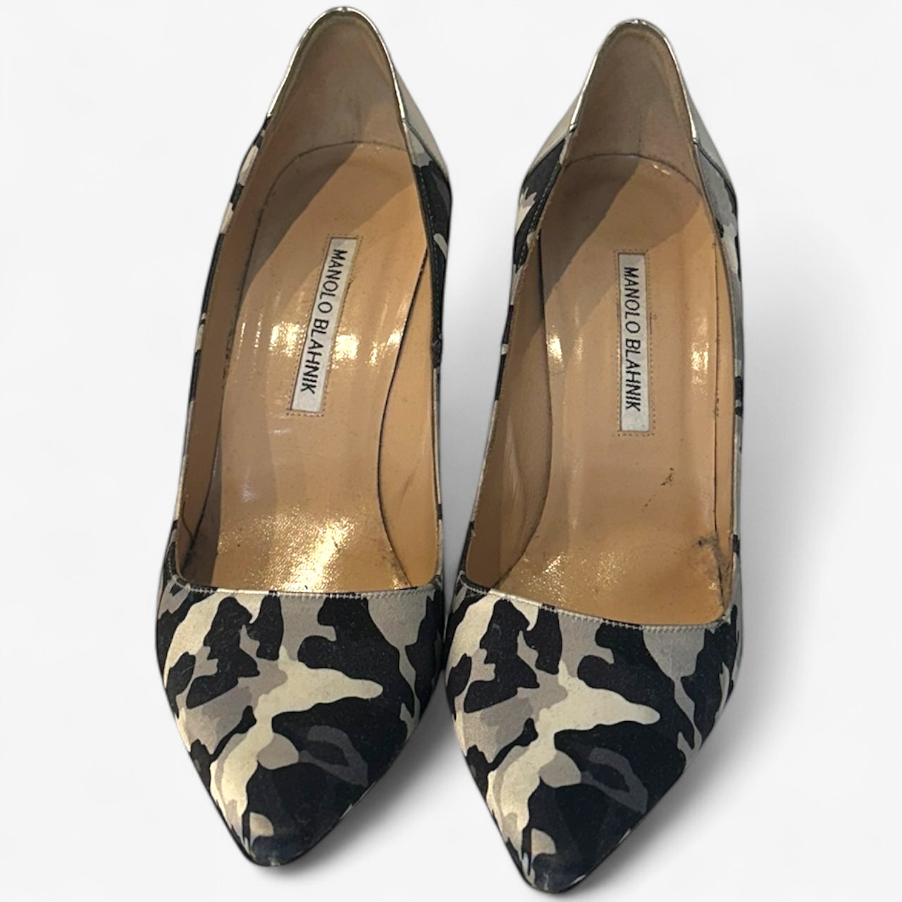 Stuart Weitzman Black Snake Skin Design Peep Toe Heels