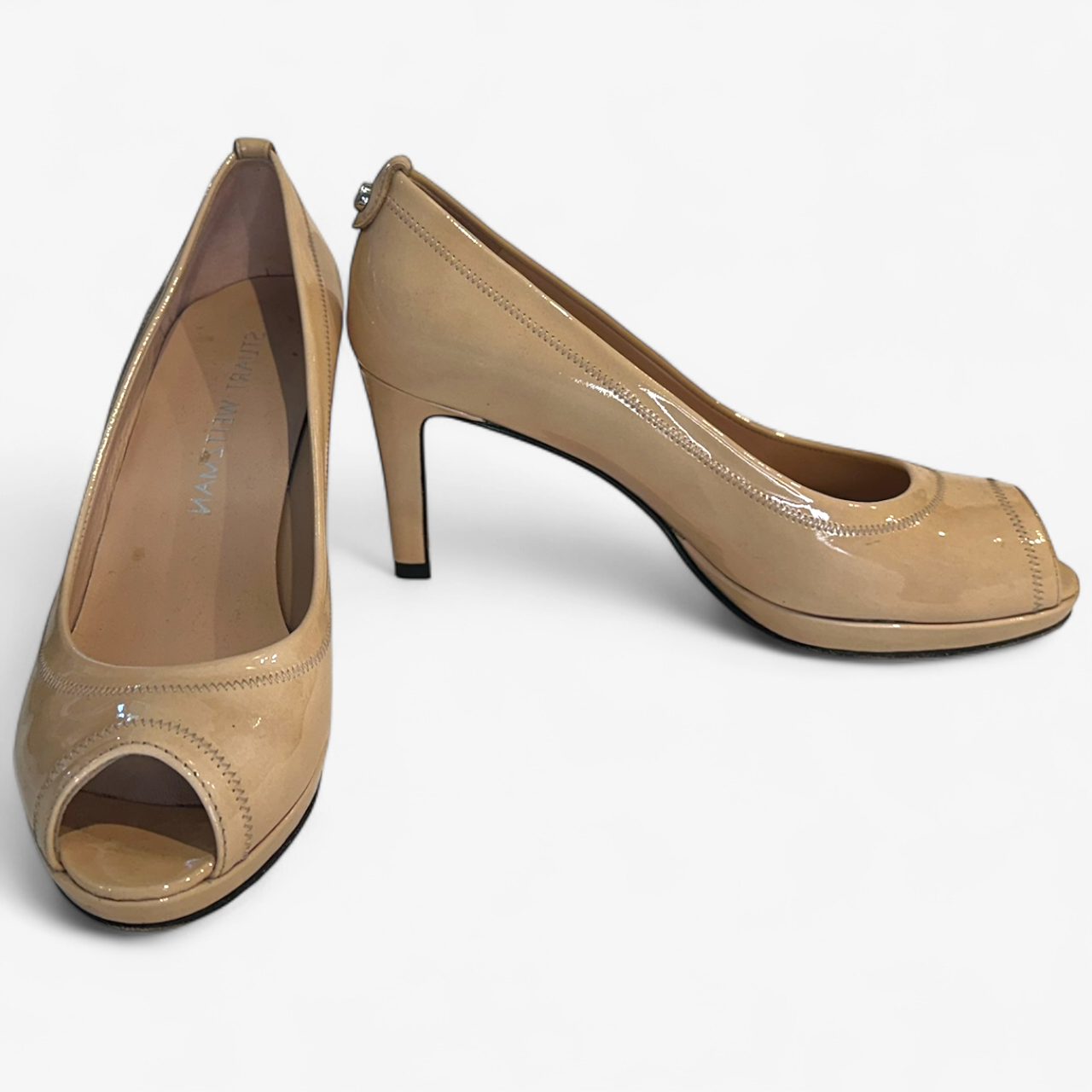 Stuart Weitzman Beige Patent Peep Toe Heels