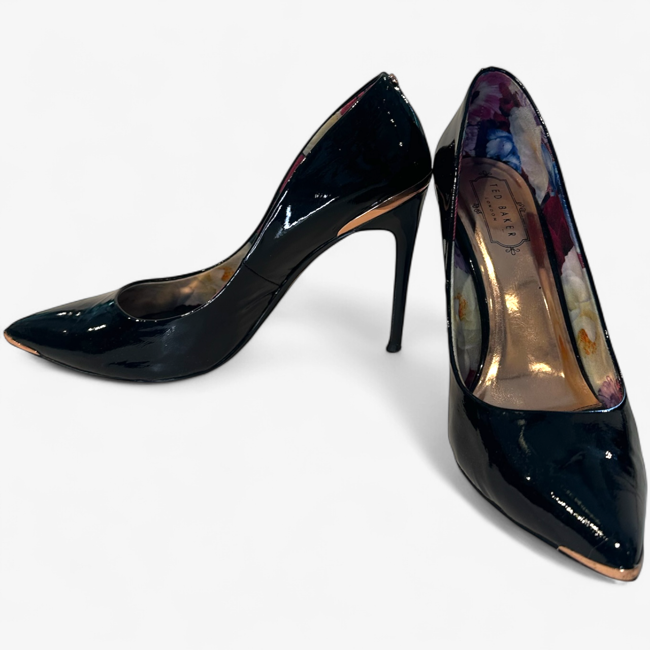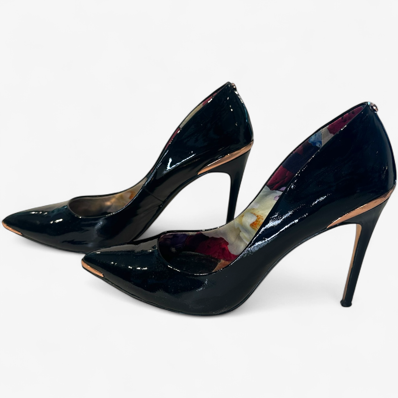Ted Baker Black Patent Heels with Rose Gold Detail
