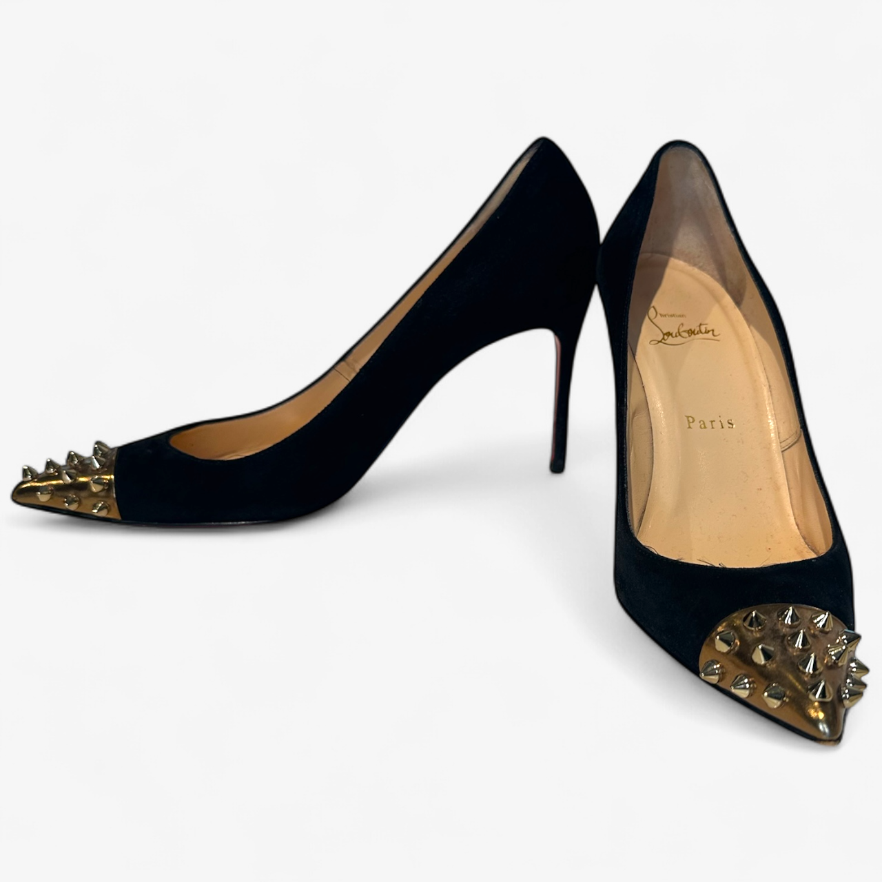 Louis Vuitton Black Satin Peep-Toe Pump - Black Flower