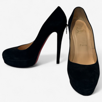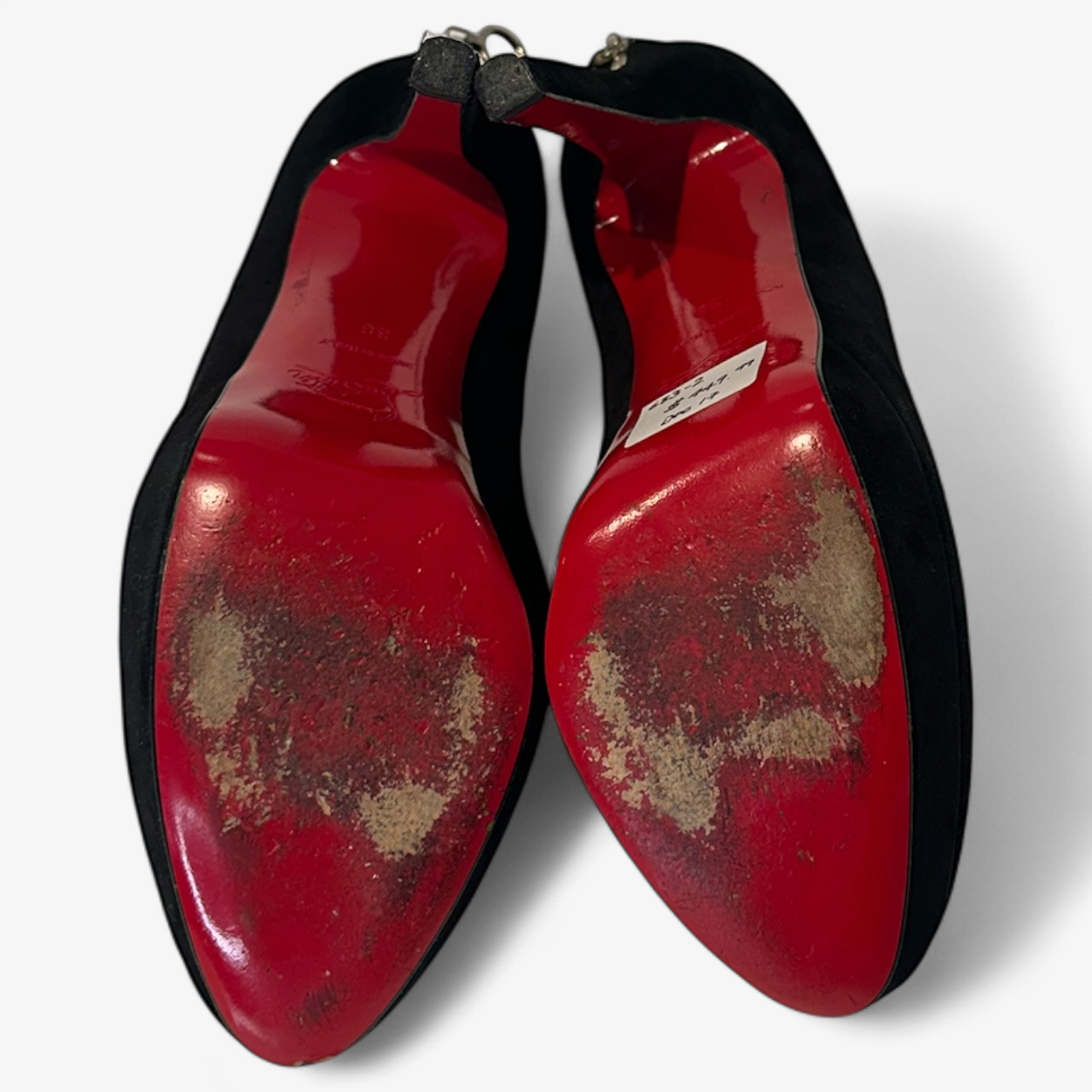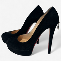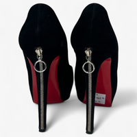 Description: Zipper details at the back, in good condition, with silver hardware and platform heels.