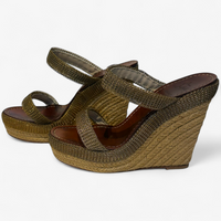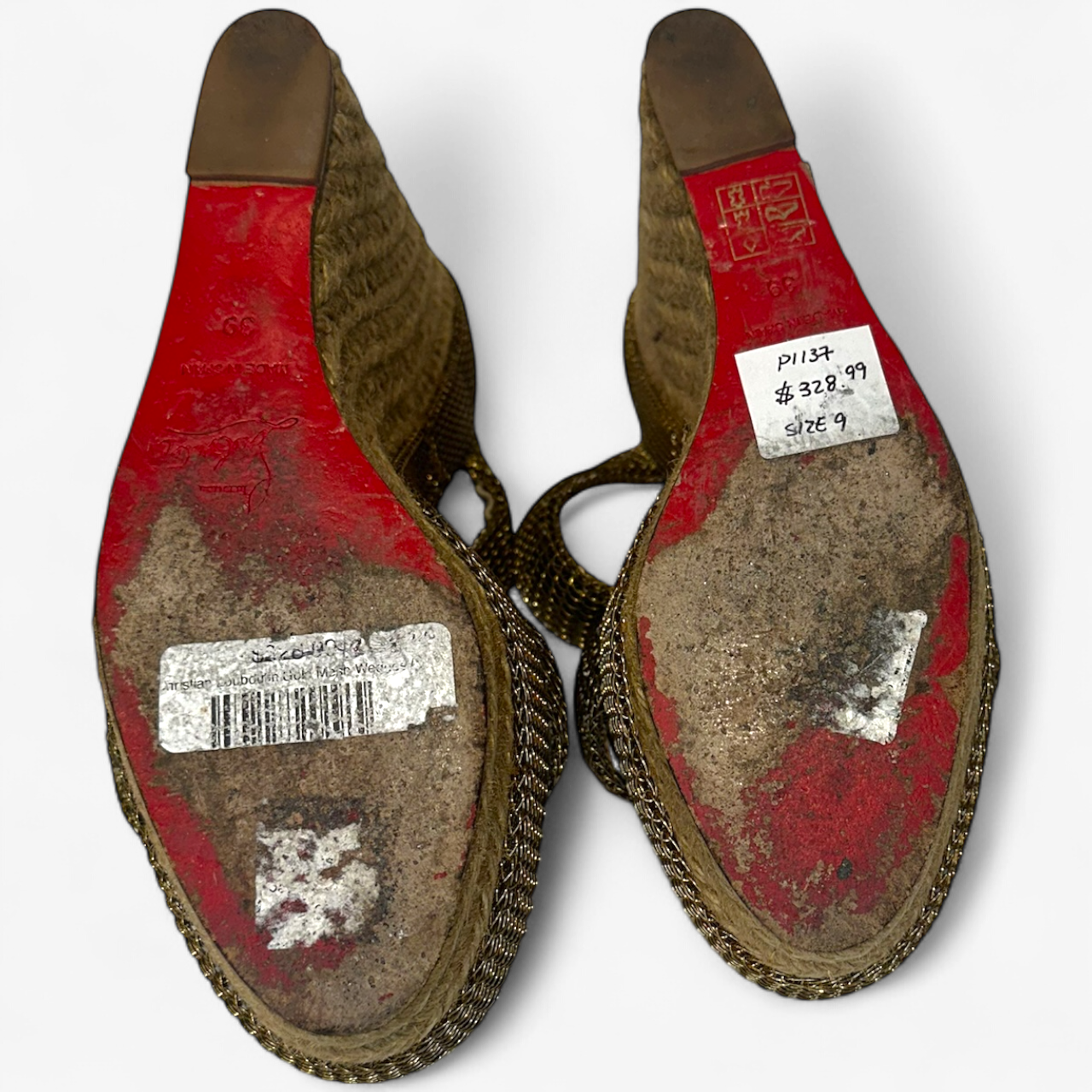 Description: Good condition, no visable wear and tear, featuring gold mesh chain accents.