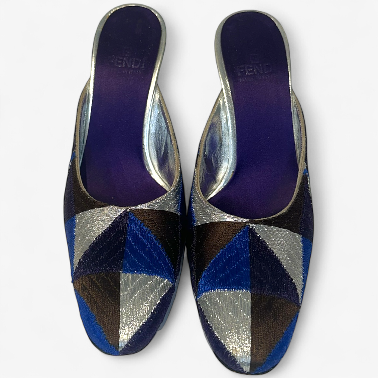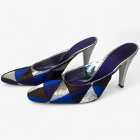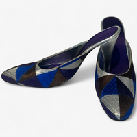 Description : With Box, good to fair condition, wooven detailing, featuring silver, purple, brown and blue.