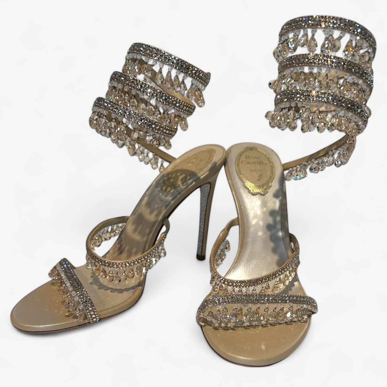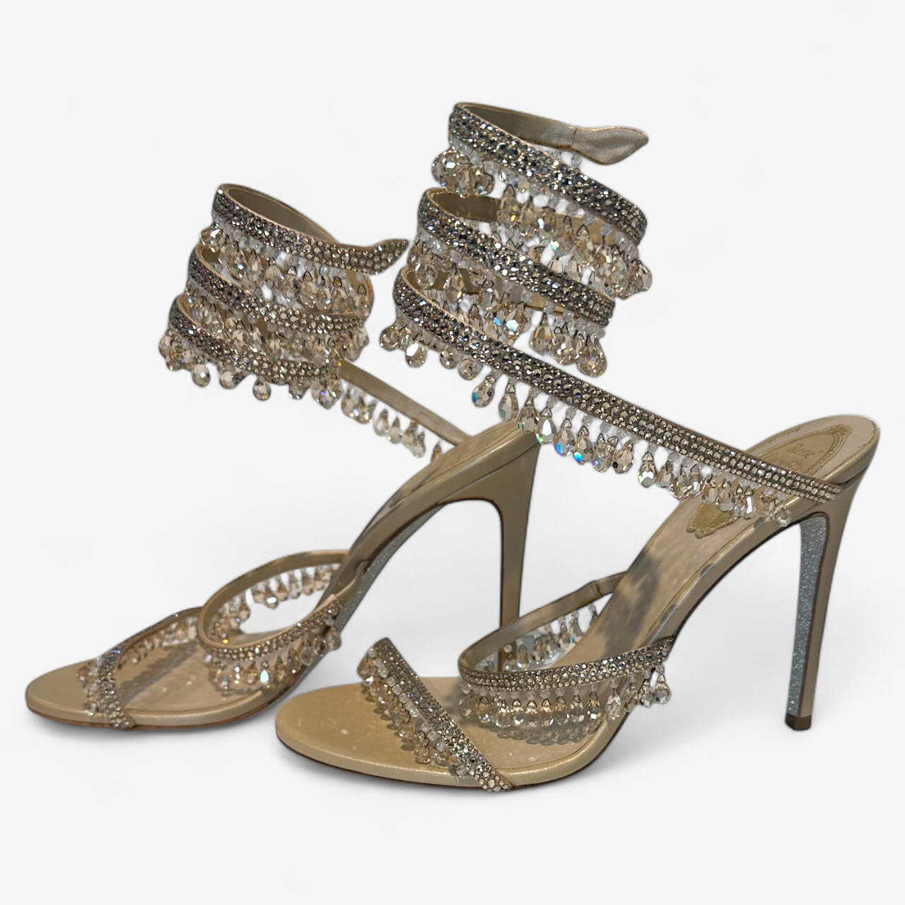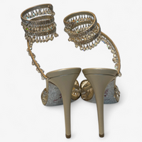 Description: With box, in good condition, wrap-around detailing, dangling crystals.