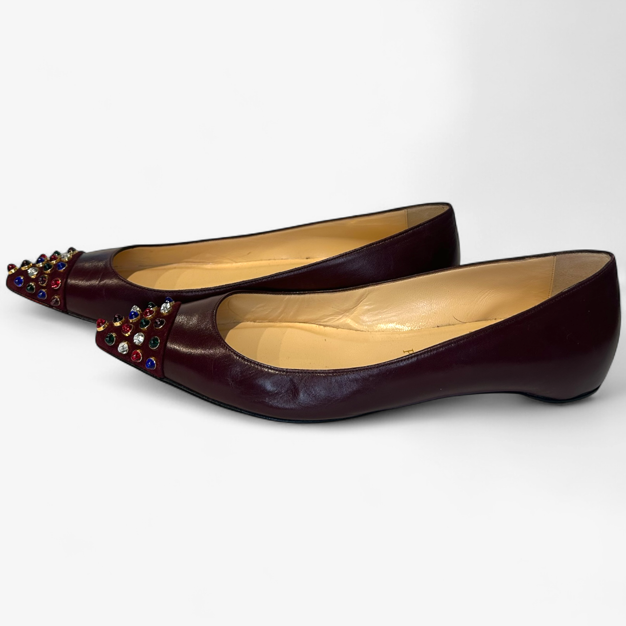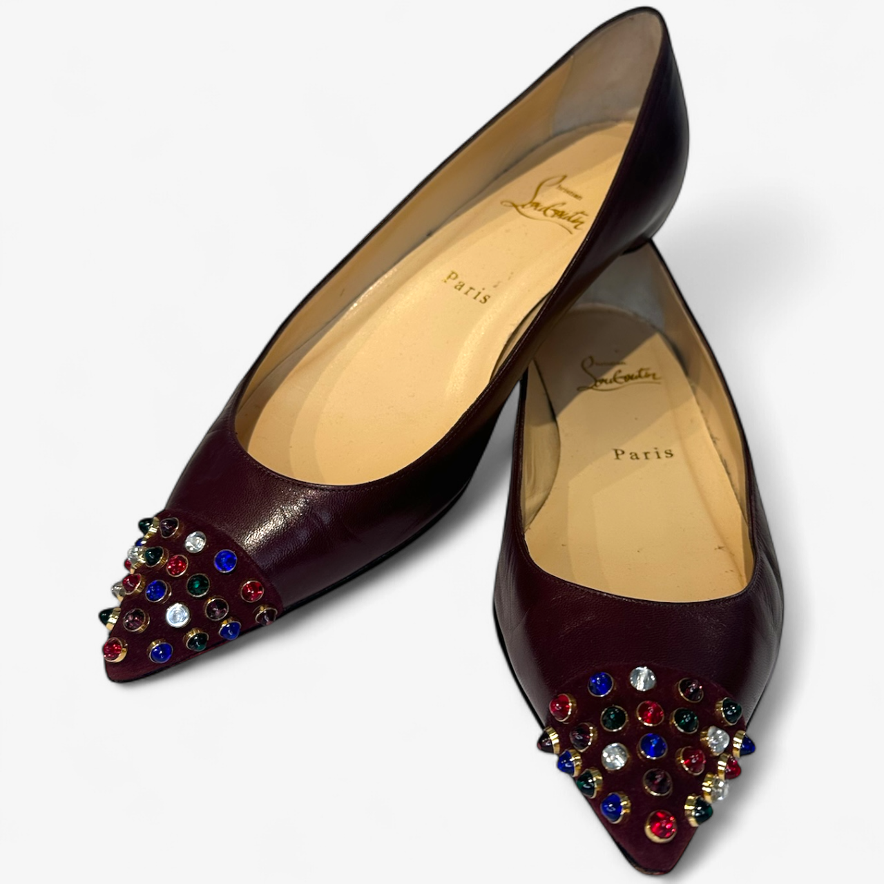 Christian Louboutin Merlot Multi Stone Studded Flats