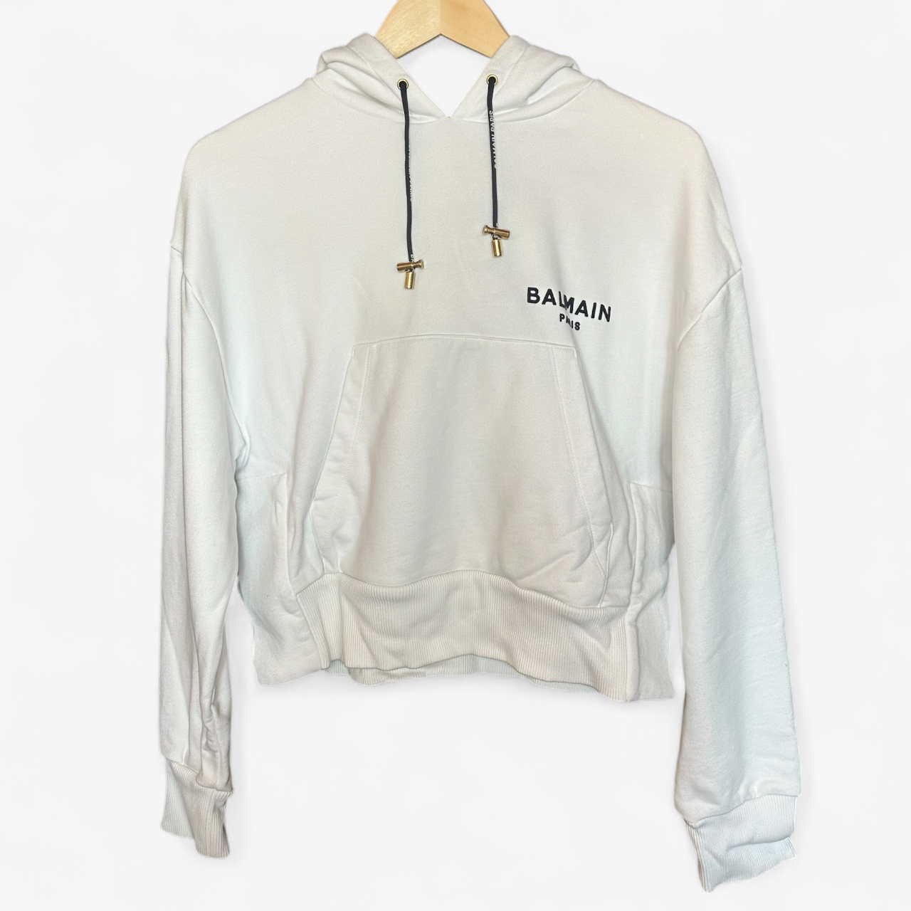 Balmain White Cropped Hoodie