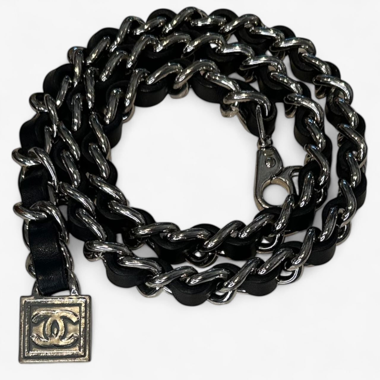 Chanel Chain Belt - Black Leather Silver Wear