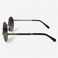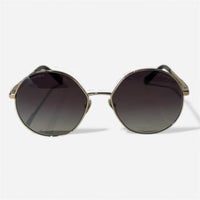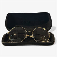 Description: With Case, gold hardware, a rounded frame, sequin sides with branding. In good conditon.
