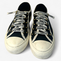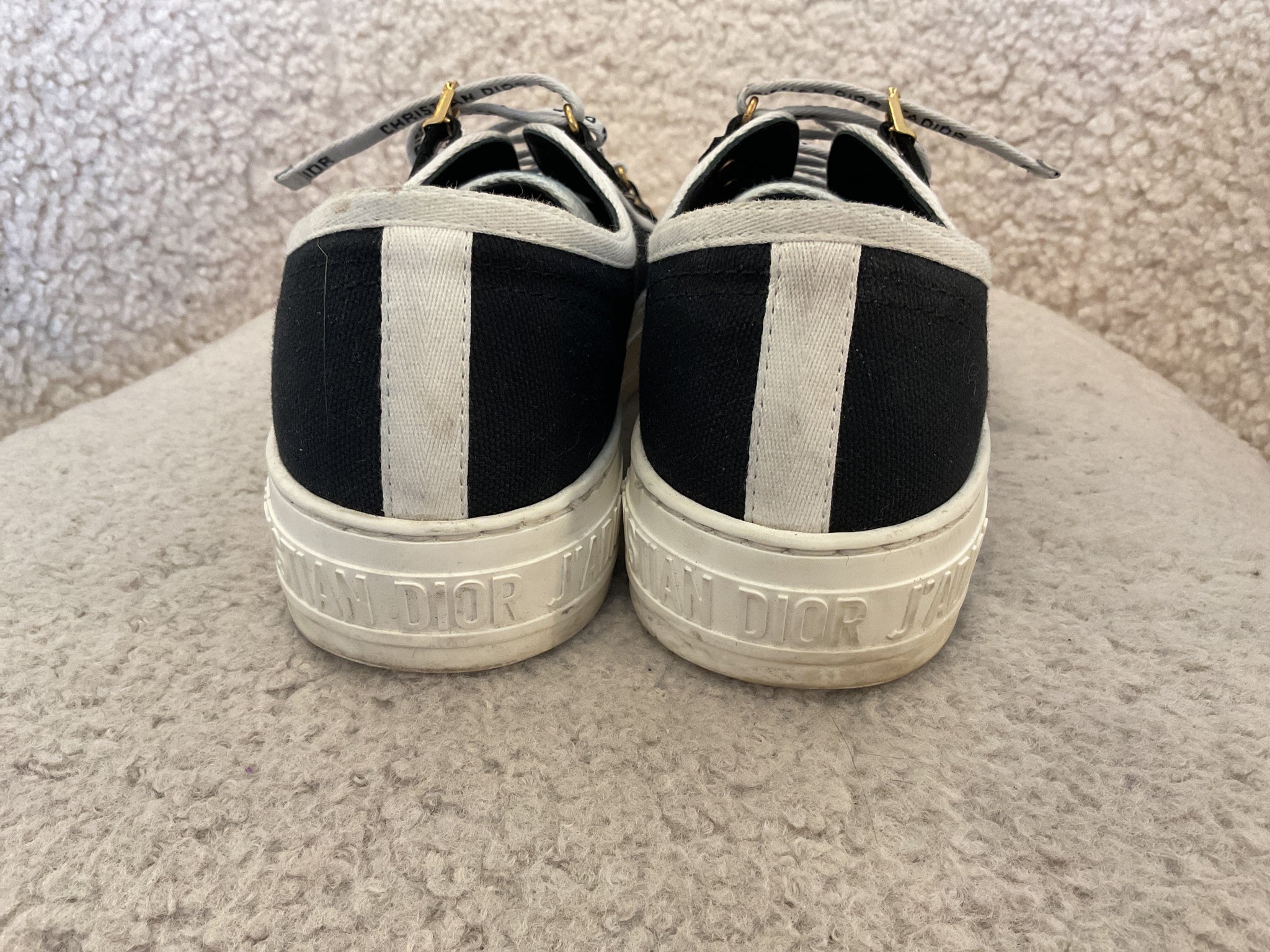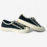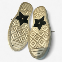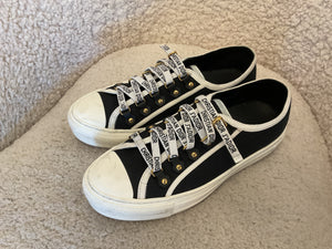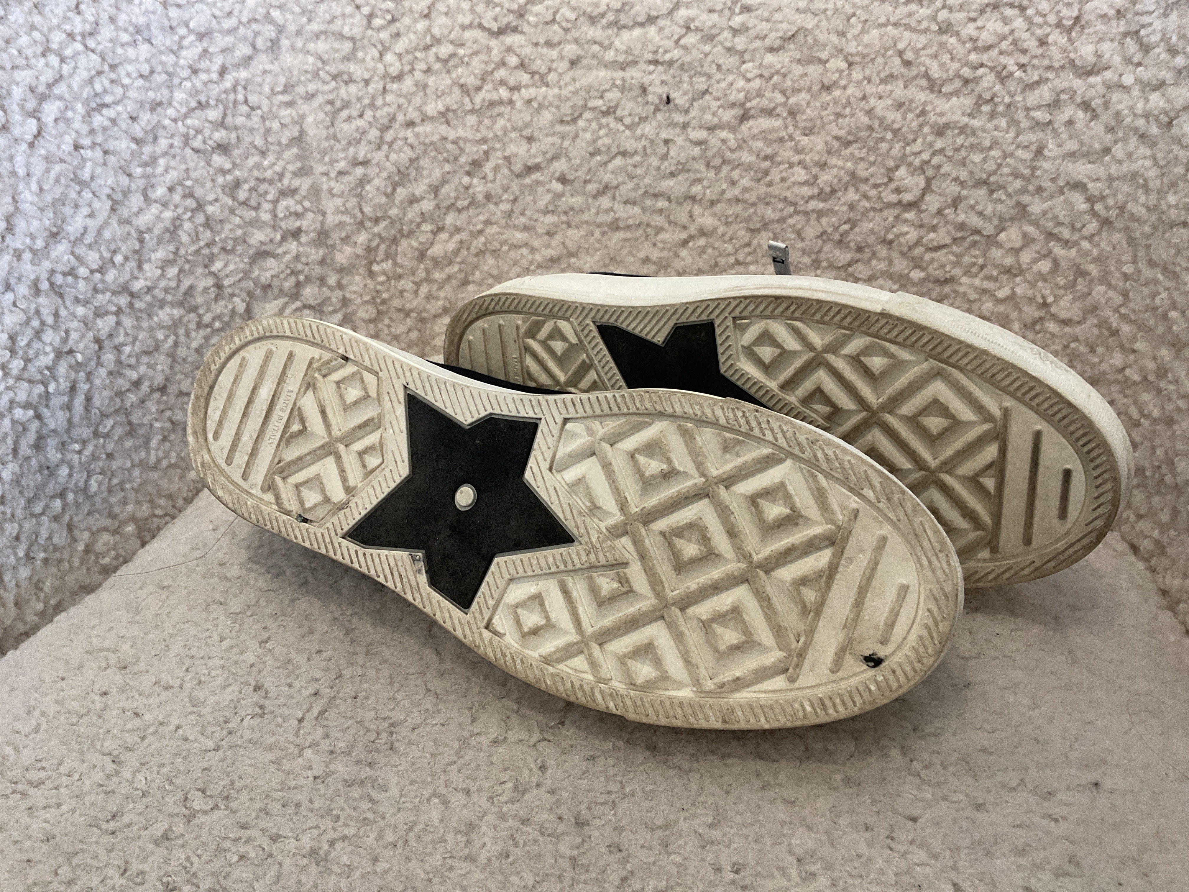 Description: Good condition, minor wear, gold detailing, classic converse style, canvas with leather eyelet area.