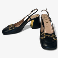 Description: With box, like new minor scuffing on the heel as pictured, gold hardware, horsebit detailing.