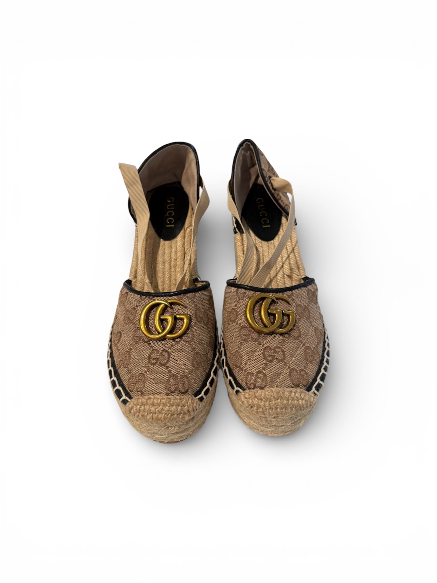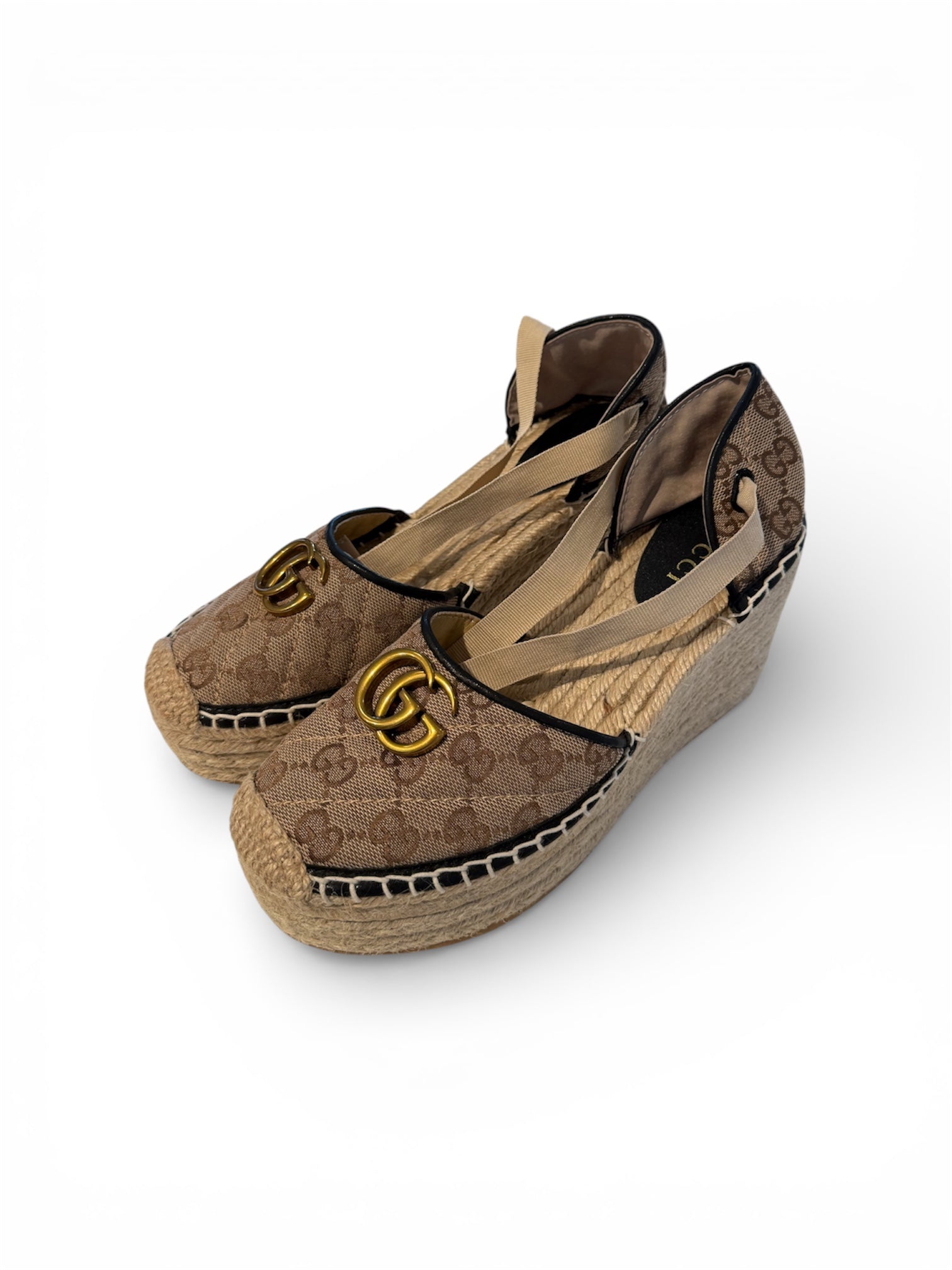 Gucci Pilar Ankle Tie Espadrille Platform Wedge