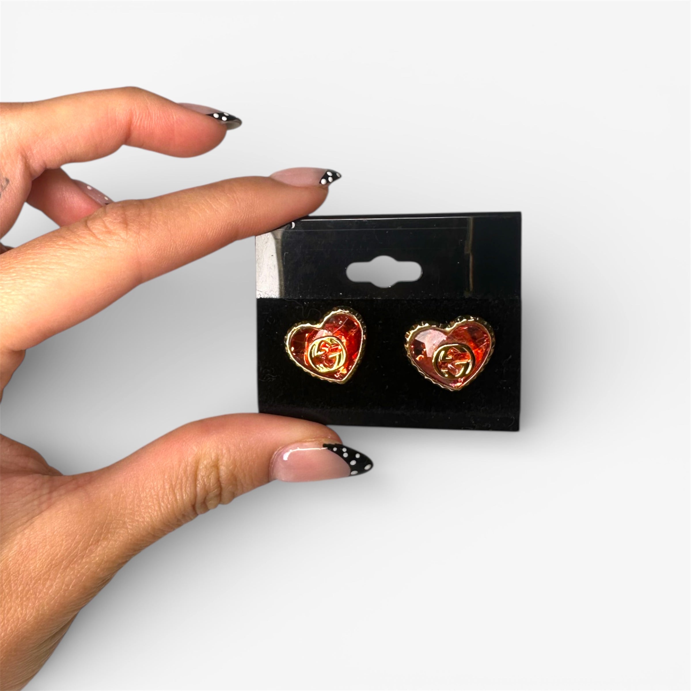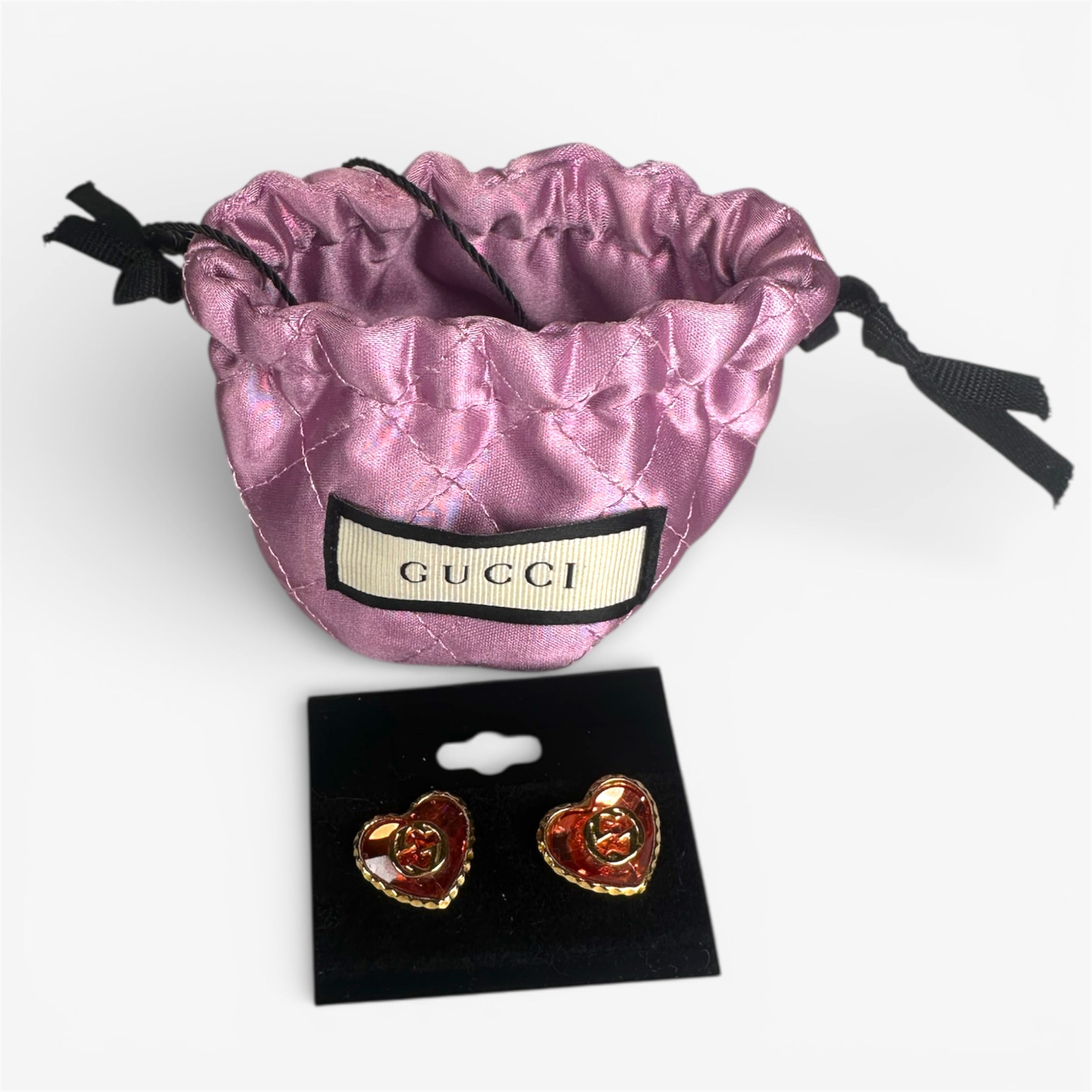 Description : In good condition, gold, with classic logo, heart-shaped red crystal.