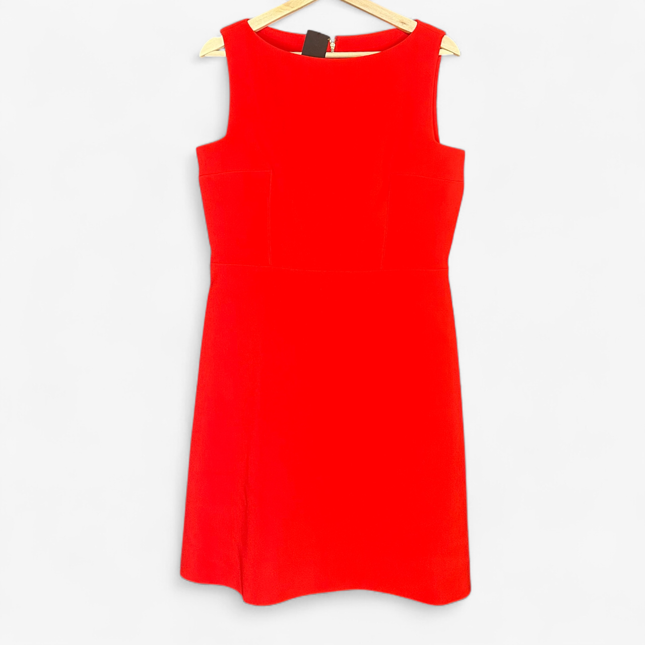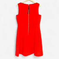 Description: Red dress, thick, sturdy fabric, zipper closure, in good condition, no visible wear and tear.