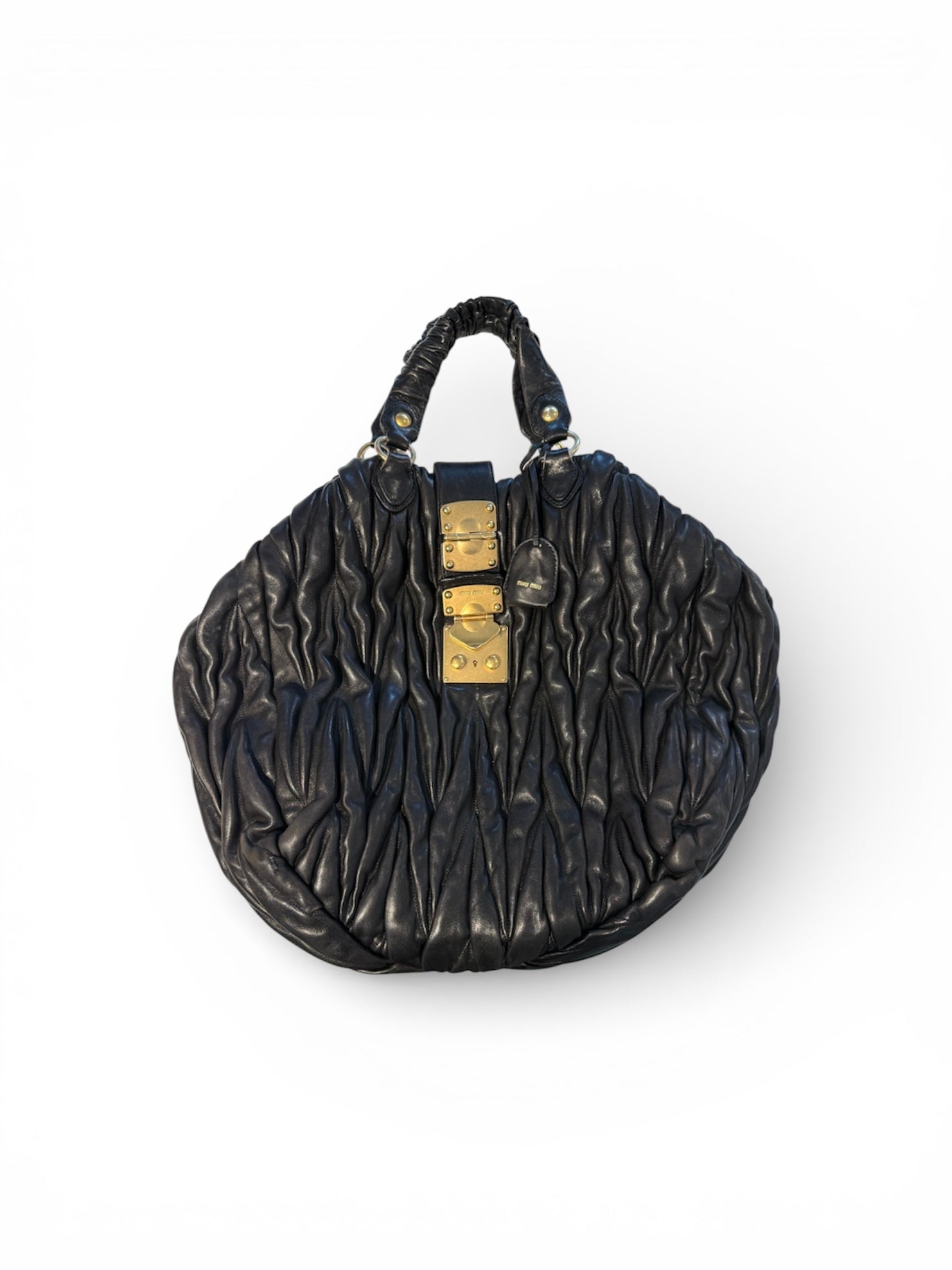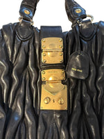 Mui Mui Black Coffer Leather Tote with Gold Hardware