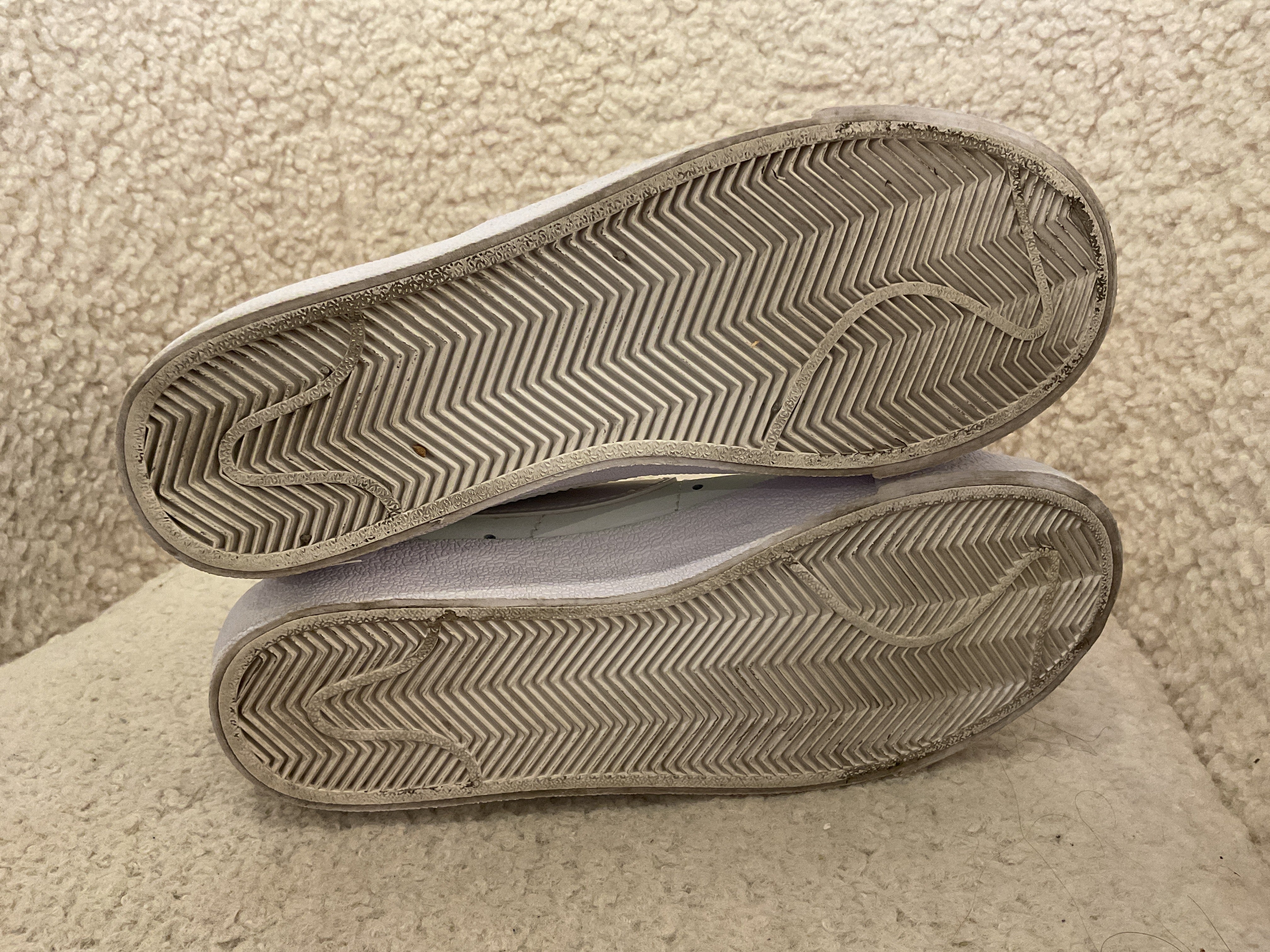Description: With one gold Nike Logo chain Charm, good/ fair condition, limited edition, white with metallic detailing. Classic blazer style, super comfortable.