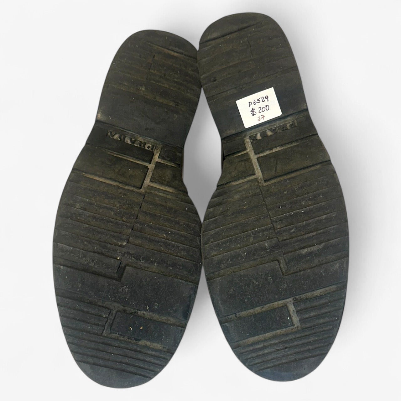 Description: Signs of wear on the toe; in good condition otherwise, with a slight platform.
