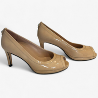 Stuart Weitzman Beige Patent Peep Toe Heels