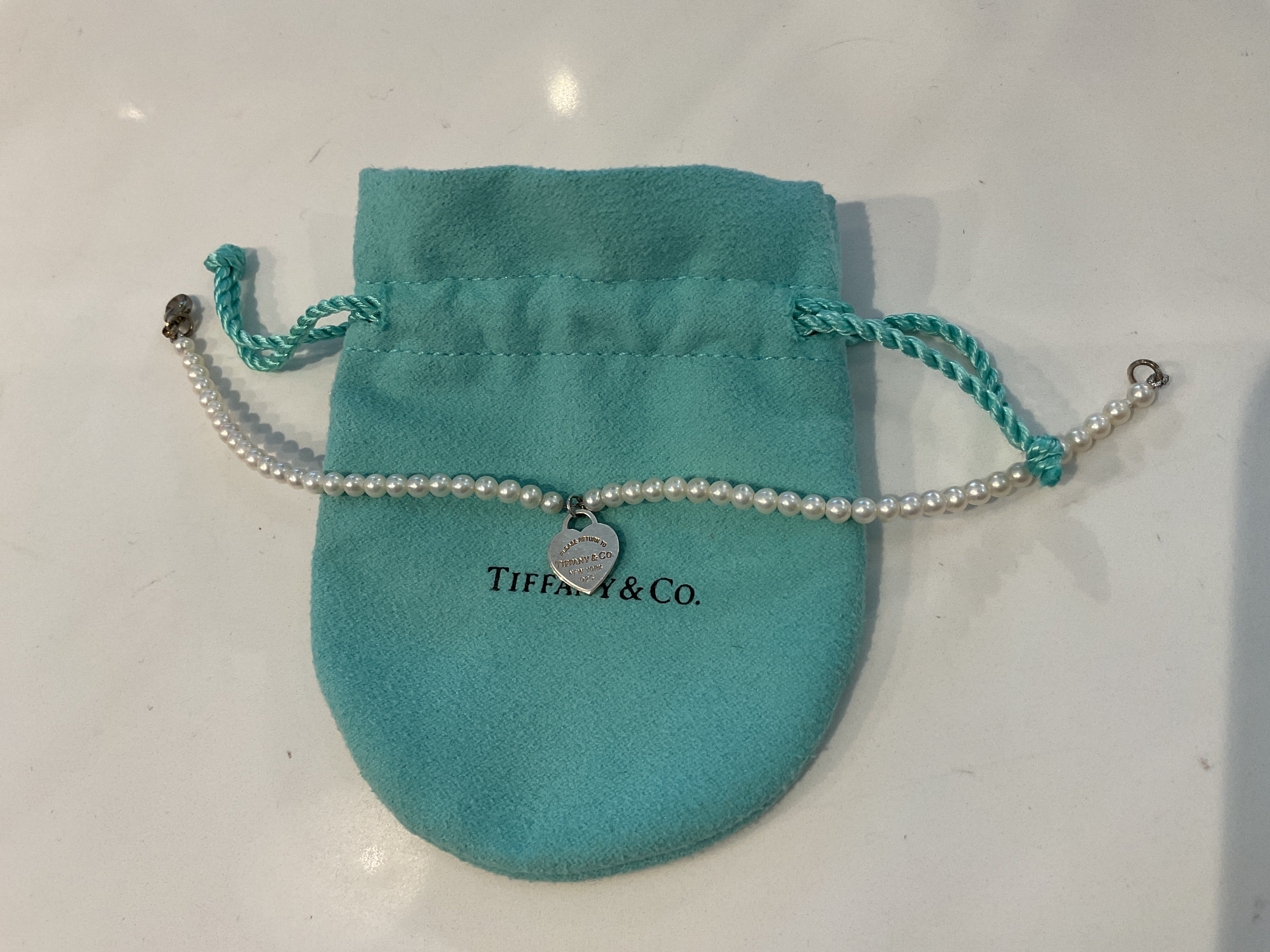 Tiffany Silver Heart Bracelet with Pearl Beads.