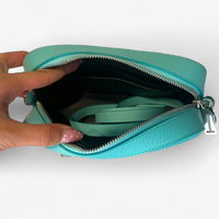 Description: New with Box, silver hardware, long strap included, zipper closure.