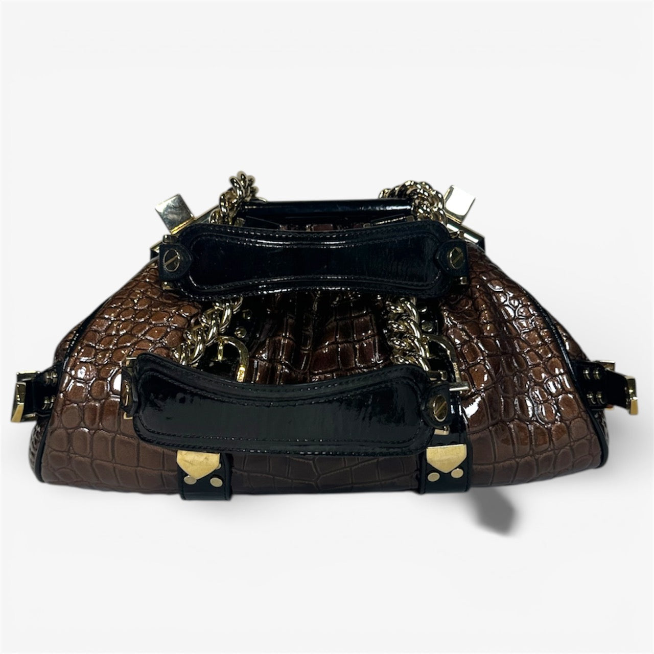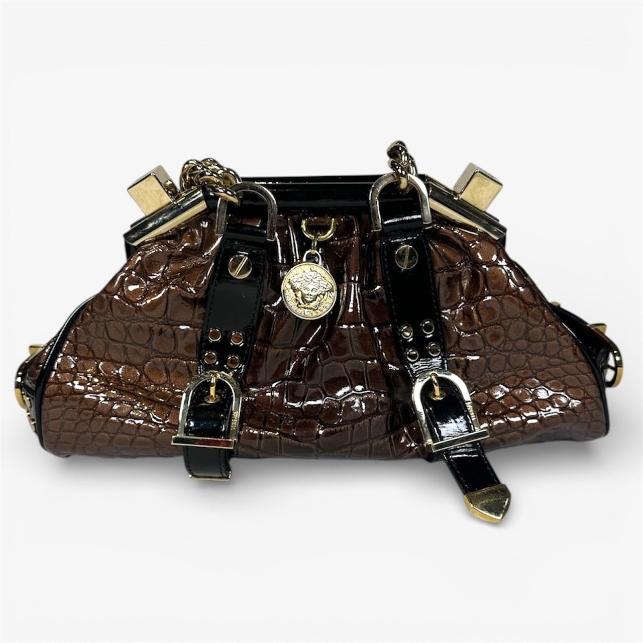 Versace Brown Croc Embossed Patent Leather Madonna Bag